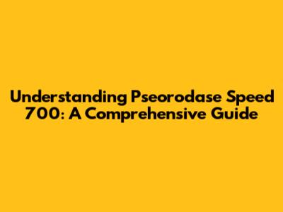 Understanding Pseorodase Speed 700: A Comprehensive Guide