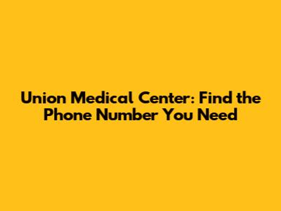 Union Medical Center: Find The Phone Number You Need