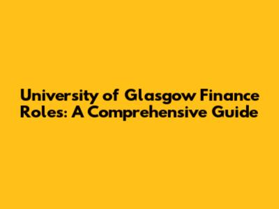 University Of Glasgow Finance Roles