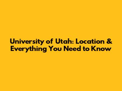 University Of Utah: Location & Everything You Need To Know