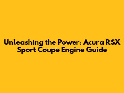 Unleashing The Power: Acura RSX Sport Coupe Engine Guide