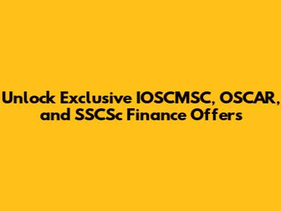 Unlock Exclusive IOSCMSC, OSCAR, And SSCSc Finance Offers