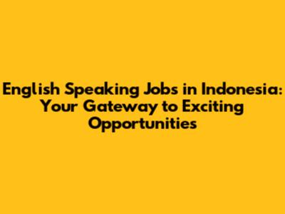Unlock Opportunities: English Speaking Jobs In Indonesia