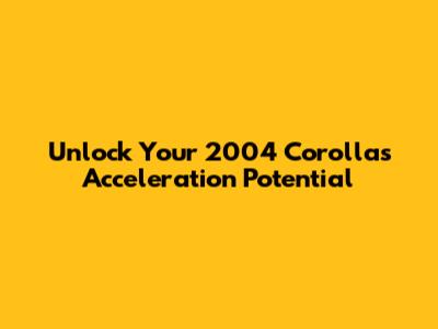 Unlock Your 2004 Corolla's Acceleration Potential