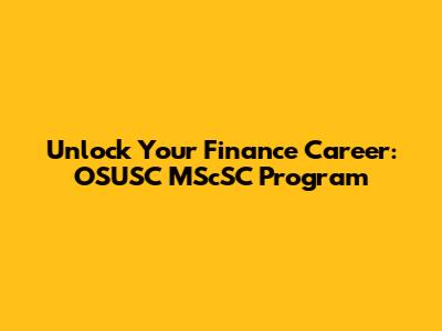 Unlock Your Finance Career: OSUSC MScSC Program