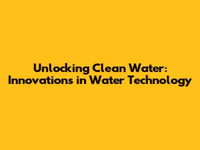 Unlocking Clean Water: Innovations In Water Technology