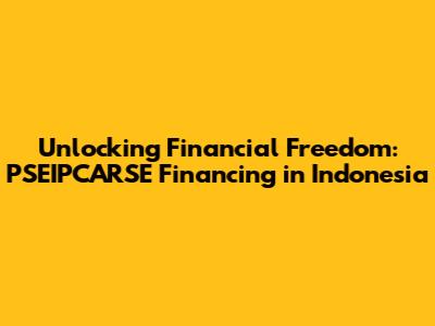 Unlocking Financial Freedom: PSEIPCARSE Financing In Indonesia