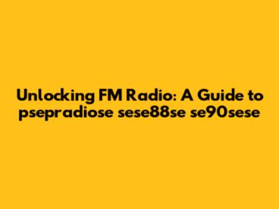 Unlocking FM Radio: A Guide To Psepradiose Sese88se Se90sese