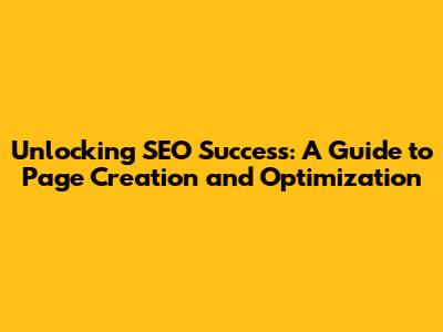 Unlocking SEO Success: A Guide To Page Creation And Optimization