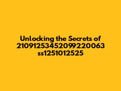 Unlocking The Secrets Of 21091253452099220063 Ss1251012525