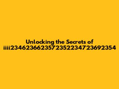 Unlocking The Secrets Of Iiii2346236623572352234723692354
