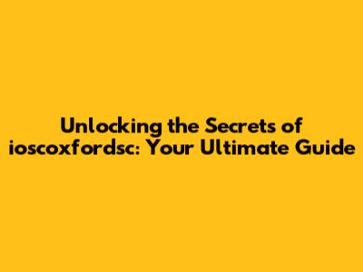 Unlocking The Secrets Of Ioscoxfordsc: Your Ultimate Guide