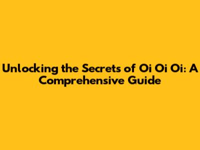 Unlocking The Secrets Of Oi Oi Oi: A Comprehensive Guide