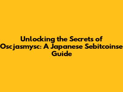 Unlocking The Secrets Of Oscjasmysc: A Japanese Sebitcoinse Guide