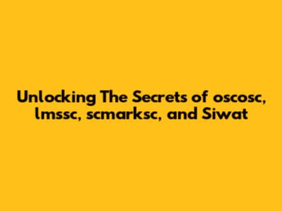 Unlocking The Secrets Of Oscosc, Lmssc, Scmarksc, And Siwat
