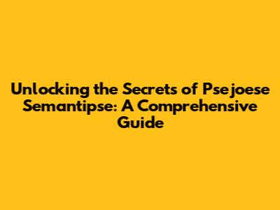 Unlocking The Secrets Of Psejoese Semantipse: A Comprehensive Guide