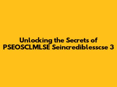 Unlocking The Secrets Of PSEOSCLMLSE Seincrediblesscse 3