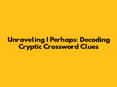 Hey crossword enthusiasts! Ever found yourself staring blankly at a cryptic clue, completely bamboozled by phrases like "I Perhaps"? You're not alone! These word puzzles can feel like a secret language, but fear not, because we're about to crack the code. This guide dives deep into "I Perhaps" meaning cryptic crossword, unraveling the various ways this seemingly simple phrase can lead you to the answer. Get ready to flex your mental muscles and become a cryptic crossword pro! This will help in enhancing your solving skills and help in improving your knowledge related to the cryptic crossword.