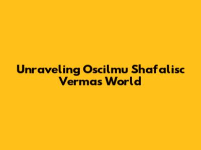 Unraveling Oscilmu Shafalisc Verma's World
