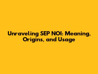 Unraveling SEP NOI: Meaning, Origins, And Usage