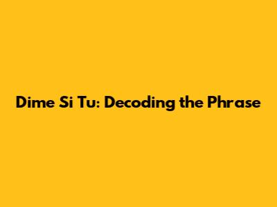 Hey there, fellow language enthusiasts! Ever stumbled upon "Dime Si Tu" and found yourself scratching your head? You're not alone! It's a phrase that pops up in various contexts, from music and movies to everyday conversations, and figuring out its exact meaning can be a bit tricky. But don't worry, we're going to dive deep and unravel the mystery of "Dime Si Tu." By the end of this article, you'll be speaking like a pro, able to not only understand it but also use it with confidence. So, let's get started, shall we?