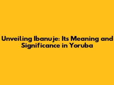 Unveiling Ibanuje: Its Meaning And Significance In Yoruba