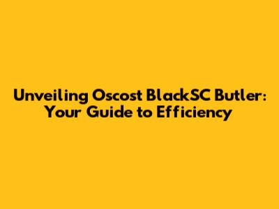 Unveiling Oscost BlackSC Butler: Your Guide To Efficiency