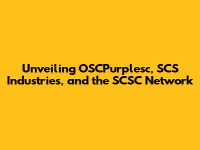 Unveiling OSCPurplesc, SCS Industries, And The SCSC Network