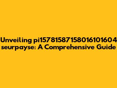 Unveiling Pi15781587158016101604 Seurpayse: A Comprehensive Guide