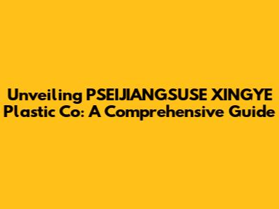 Unveiling PSEIJIANGSUSE XINGYE Plastic Co: A Comprehensive Guide