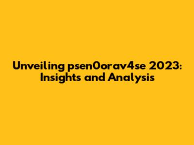 Unveiling Psen0orav4se 2023: Insights And Analysis