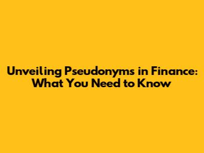 Unveiling Pseudonyms In Finance: What You Need To Know
