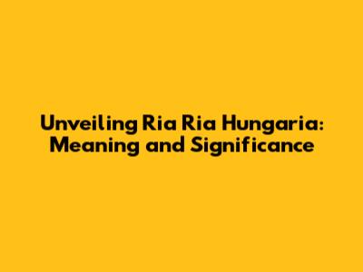 Unveiling 'Ria Ria Hungaria': Meaning And Significance