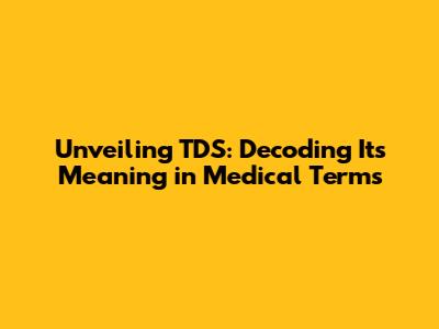 Unveiling TDS: Decoding Its Meaning In Medical Terms