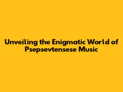 Unveiling The Enigmatic World Of Psepsevtensese Music