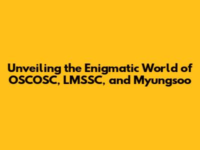 Unveiling The Enigmatic World Of OSCOSC, LMSSC, And Myungsoo