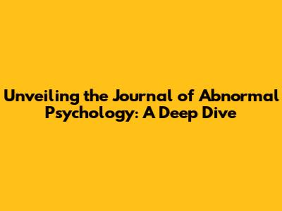 Unveiling The Journal Of Abnormal Psychology: A Deep Dive