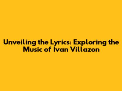 Unveiling The Lyrics: Exploring The Music Of Ivan Villazon
