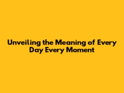 Unveiling The Meaning Of 'Every Day Every Moment'