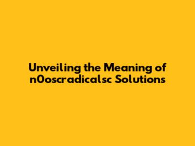 Unveiling The Meaning Of N0oscradicalsc Solutions