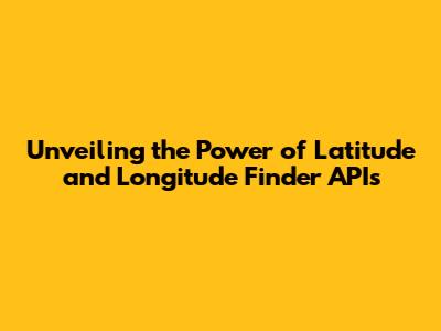 Unveiling The Power Of Latitude And Longitude Finder APIs