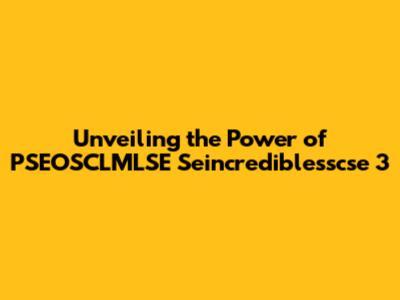 Unveiling The Power Of PSEOSCLMLSE Seincrediblesscse 3