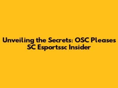 Unveiling The Secrets: OSC Pleases SC Esportssc Insider