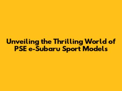 Unveiling The Thrilling World Of PSE E-Subaru Sport Models