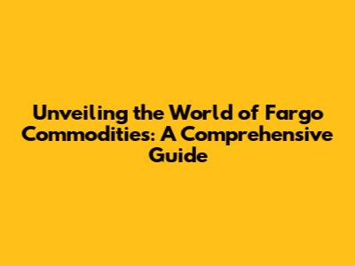 Unveiling The World Of Fargo Commodities: A Comprehensive Guide