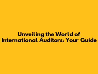 Unveiling The World Of International Auditors: Your Guide