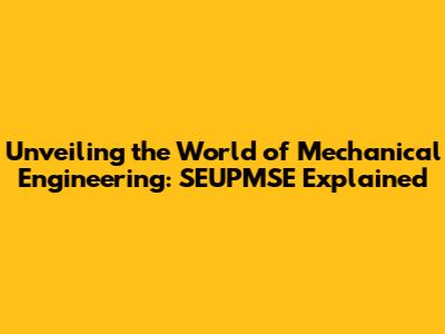 Unveiling The World Of Mechanical Engineering: SEUPMSE Explained