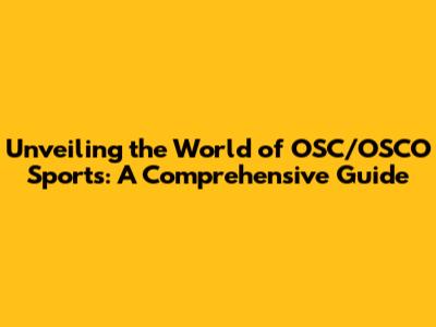 Unveiling The World Of OSC/OSCO Sports: A Comprehensive Guide