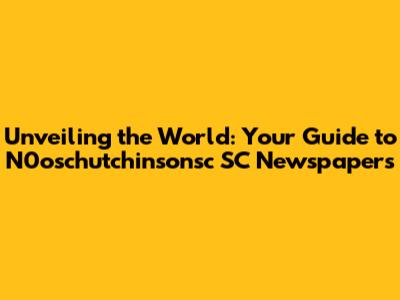 Unveiling The World: Your Guide To N0oschutchinsonsc SC Newspapers