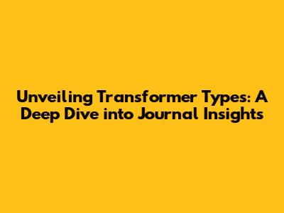 Unveiling Transformer Types: A Deep Dive Into Journal Insights